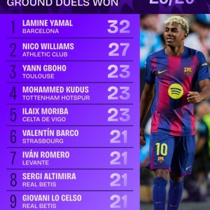 15 01月 2026 0 本赛季五大联赛地面对抗成功榜:亚马尔32次居首,尼科27次第二 9月12日讯 Squawka统计了本赛季球员在五大联赛的地面对抗成功次数,并列出榜单。本赛季五大联赛地面对抗成功排名:亚... 意甲