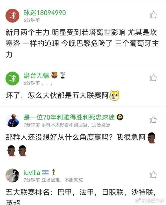 在社交媒体上,有的球迷们将新月的失利同若塔离世事件结合了起来,他们纷纷表示,新月有两个主力是葡萄牙人,明显受到了若塔离世的影响,尤其是坎塞洛,同样的道理,今晚登场的大巴黎有些危险了,因为他们队中有三位葡萄牙主力。